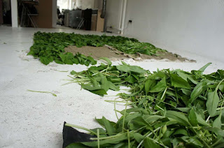 Die aus Deutschland wieder in die Schweiz zurückgekehrte Künstlerin beschäftigt sich mit allen Sinnen und möchte uns an einem ganz speziellen Sinn-Erlebnis teil haben lassen. Düfte sind für die Künstlerin sinnliche Erlebnisse, die in der Kunst nicht fehlen dürfen. Leider sind Düfte allzu schnell nicht mehr wahrnehmbar – eine Duftinstallation ist also per se ephemere Kunst. Die Bärlauchblätter geben einen starken, intensiven Duft ab und werden sich zusätzlich während des Tages in der Farbe verändern – sie welken.